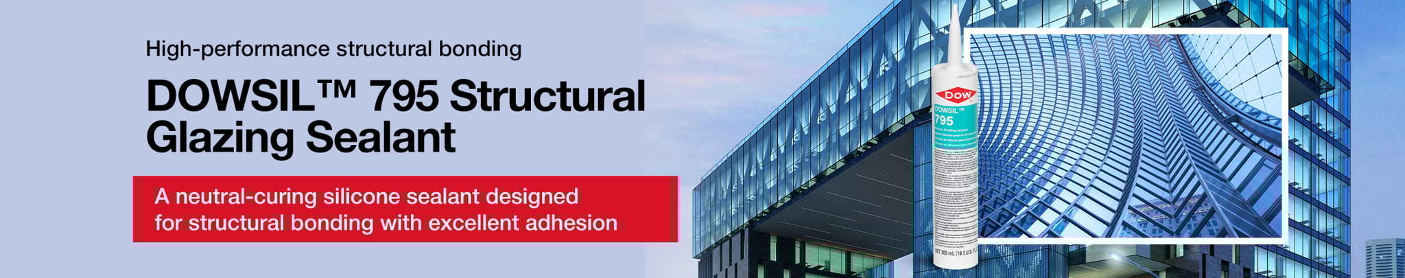 DOWSIL™ 795 Structural Glazing Sealant is designed for site or factory glazing and curtainwall production. It can be used where dual structural and weather seal applications are desired.