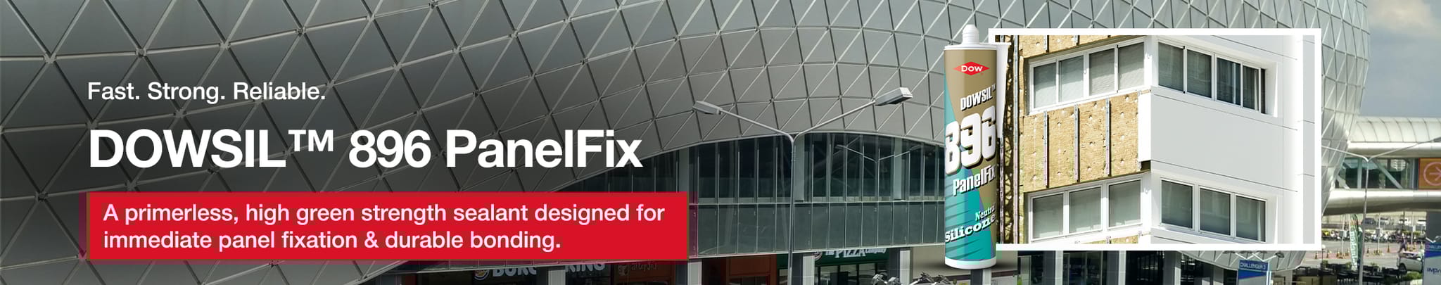 DOWSIL™ 896 PanelFix is a sealant specifically designed for panel bonding applications that require high durability and fast handling.